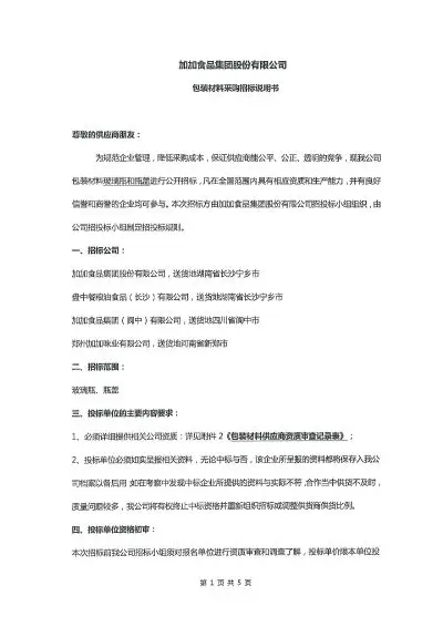 加加食品集团- 包装材料采购招标